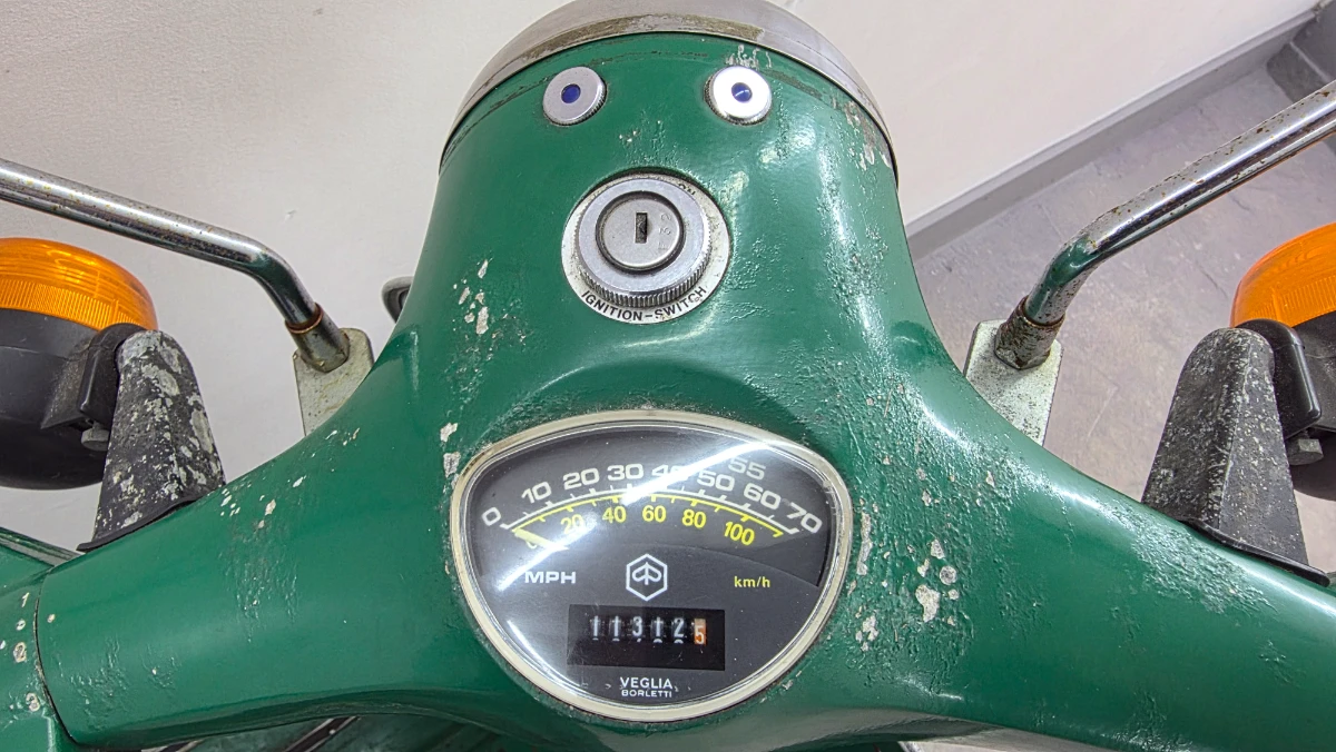 This scooter is all original in it's paintwork and it's specifications , namely the indicators , unique switches with the engine RUN ON/OFF switch , neutral dash light indicator, Primavera headlight and 12v battery lighting system , it was quite a lot of modern tech for a classic 1965 designed scooter.