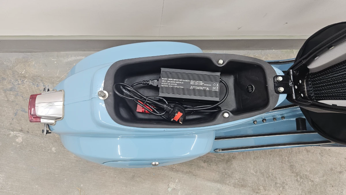 Vespa 50n classic small frame with our electric conversion 48v version .